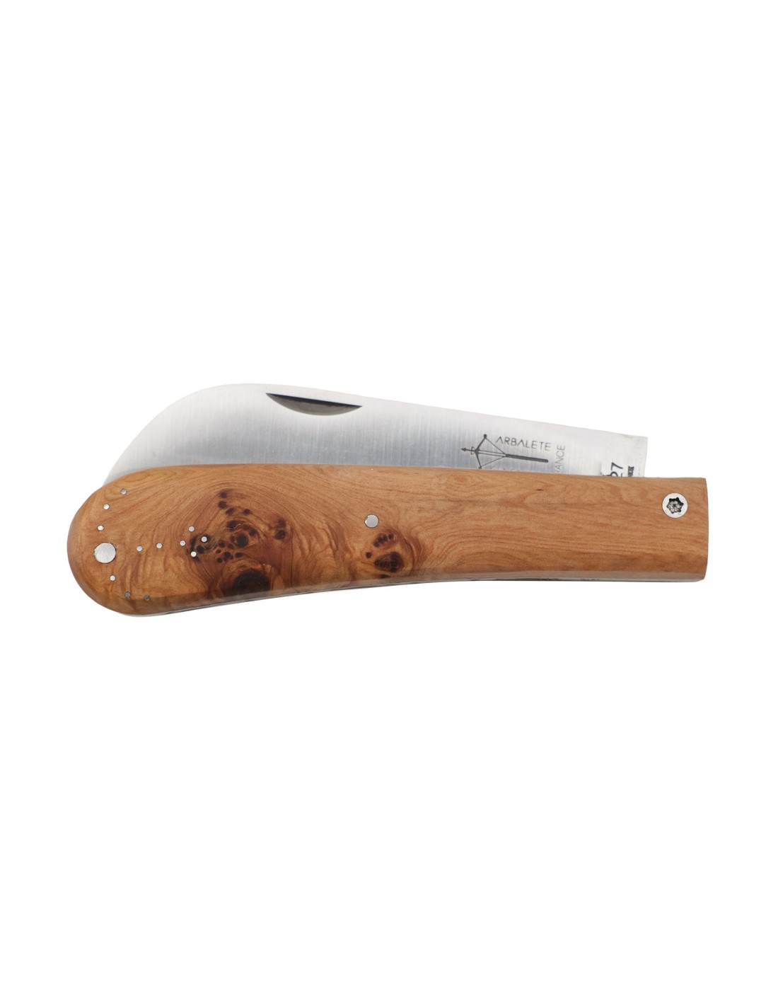 Regional folding knife, Roquefort model, with a 12 cm juniper wood handle.Hand-chiseled spring & blade.Full handle with matt finish. Stainless steel blade 12c27 with matt finish.