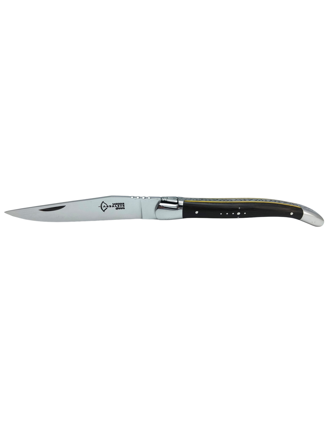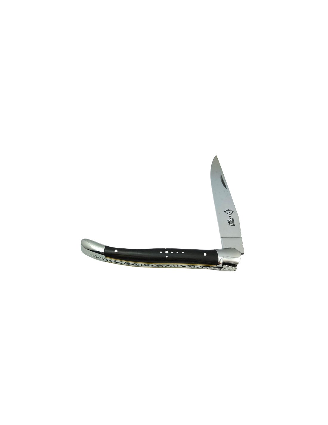 Laguiole Prestige folding knife, 12 cm olive wood handle.Welded bee & chiseled spring.1 stainless steel bolster with matt finish. Stainless steel blade 12c27.
