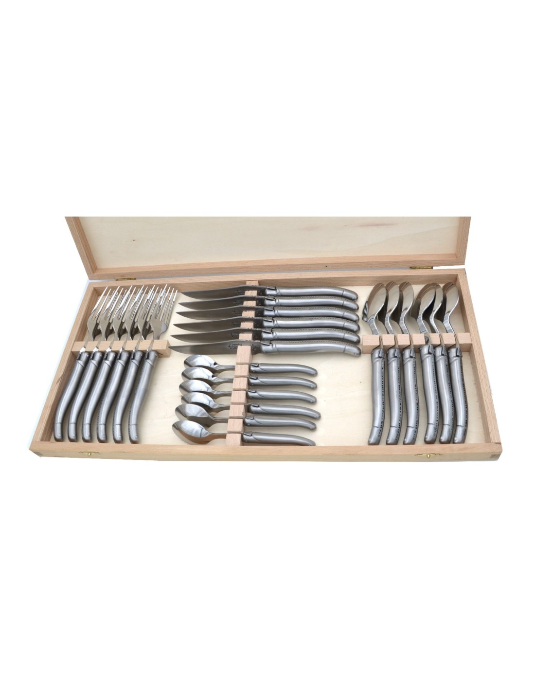 Laguiole table cutlery set, full handle in stainless steel with matt finish6 table forks6 steak knives (total length of the steak knife is 23cm)