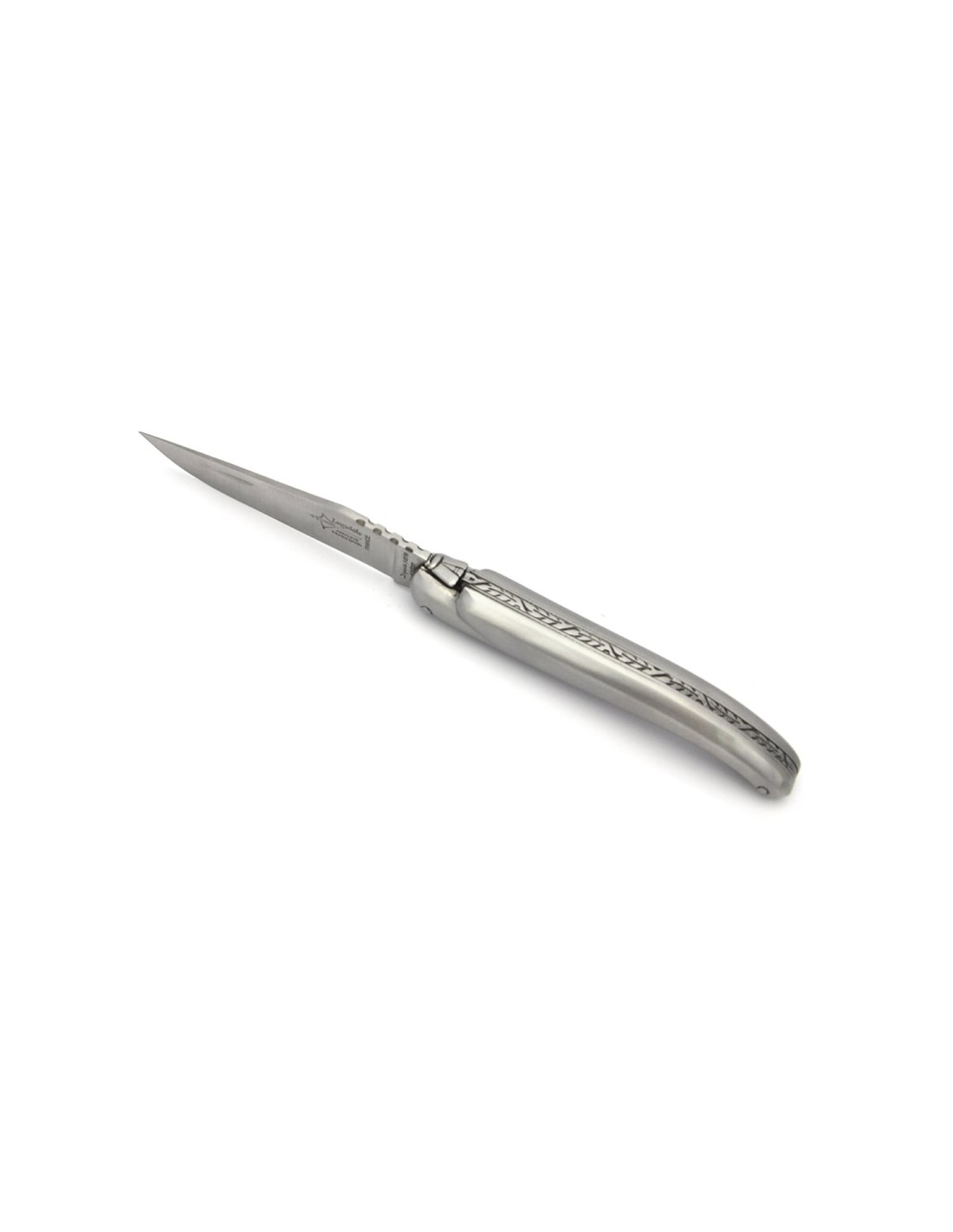 Laguiole Original folding knife, with a 11cm full handle in stainless steel.