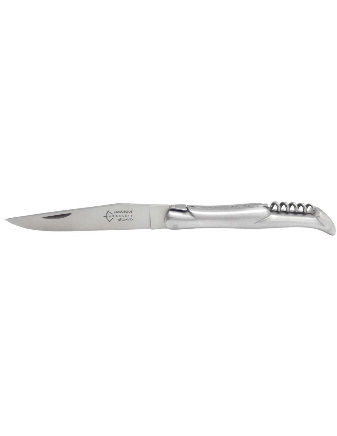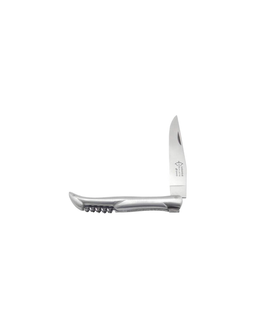 Laguiole Antan folding knife, with a 12 cm zebu's horn handle.2 pieces: blade & corkscrew.Welded bee & guilloché spring.2 stainless steel bolsters with matt finish. Stainless steel blade 12c27.