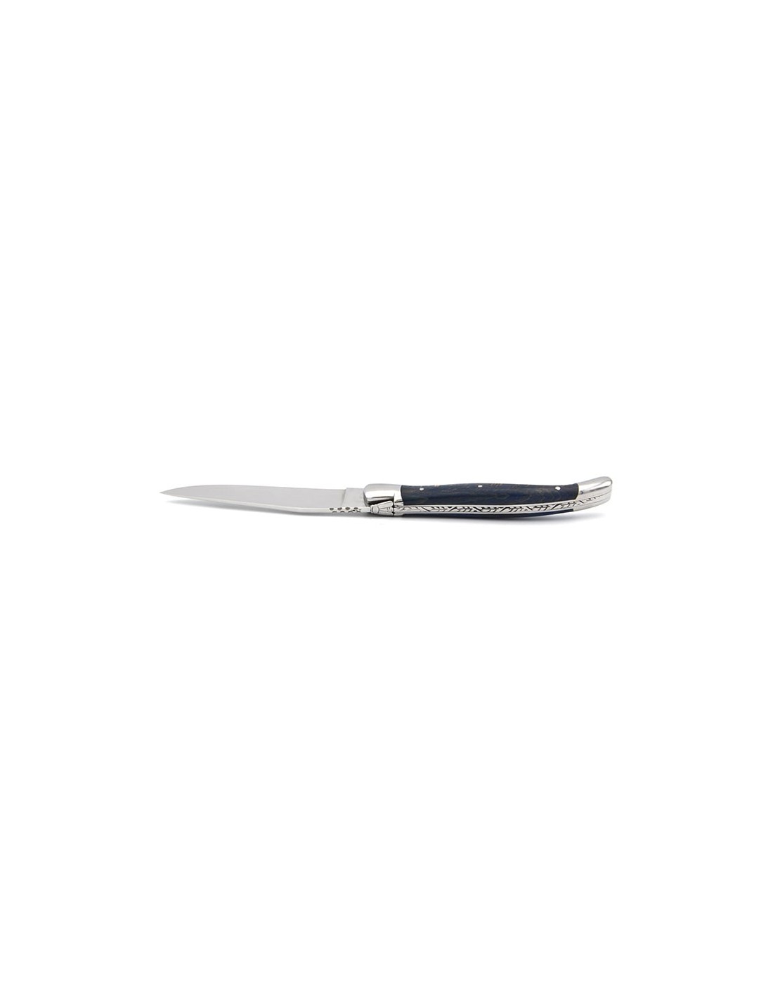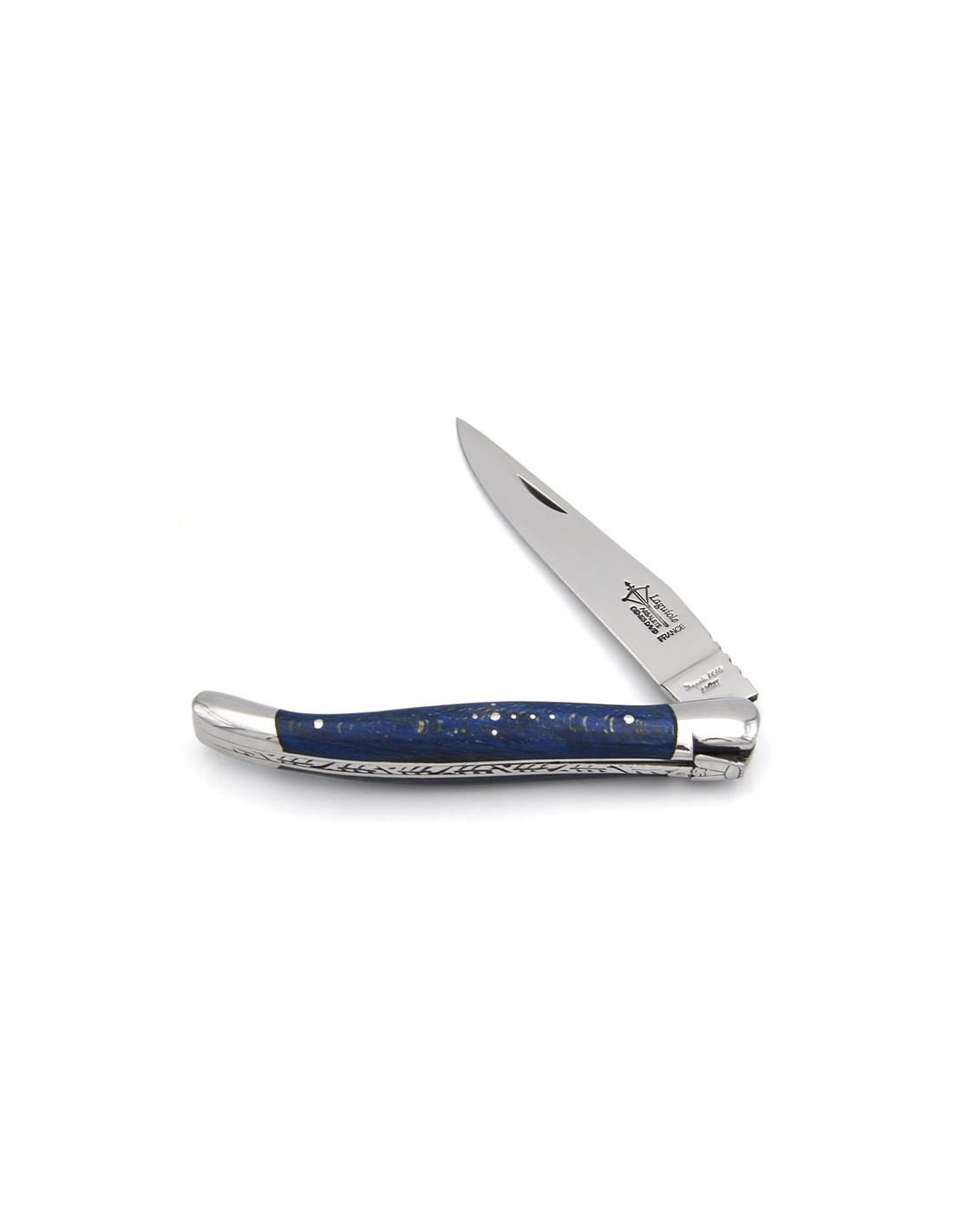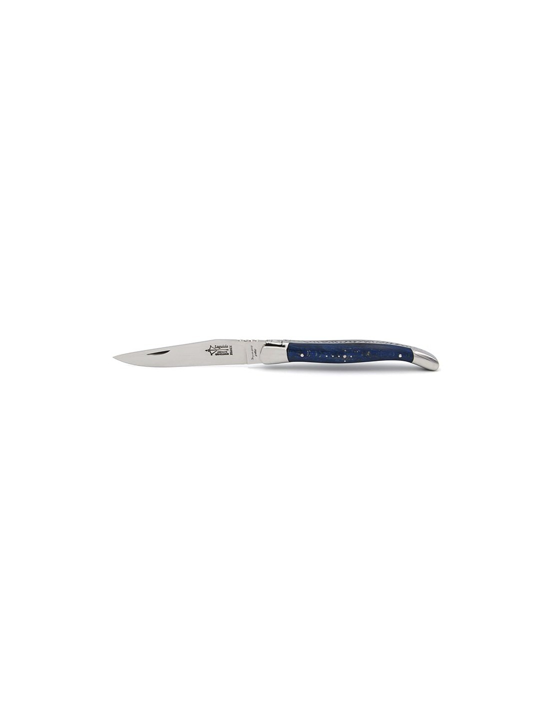 Laguiole Prestige folding knife, with a 12 cm blue stained beech wood handle.