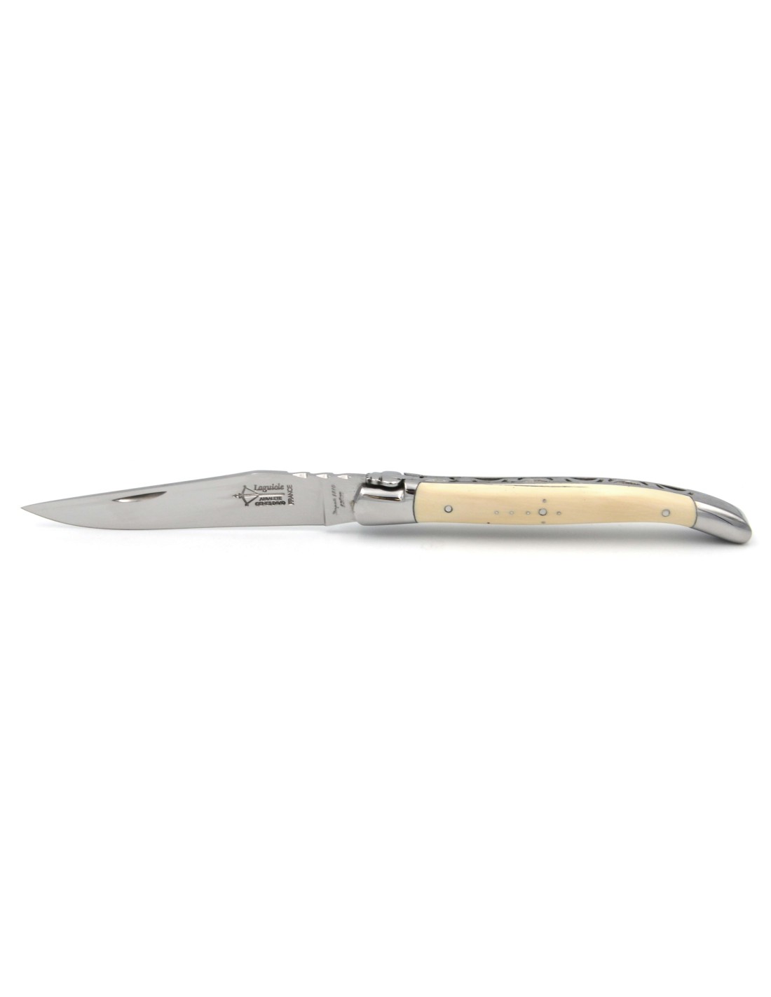 Couteau pliant Laguiole Forgé, manche en ivoire de mammouth blanc (sans croûte) de 12 cm.