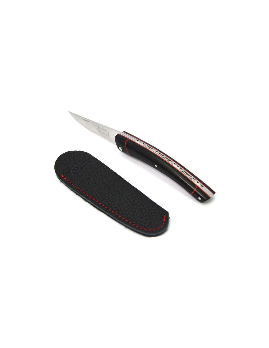 Le Thiers ® pack couteau + étui, manche en ébène avec intercalaire rouge, finition brillant